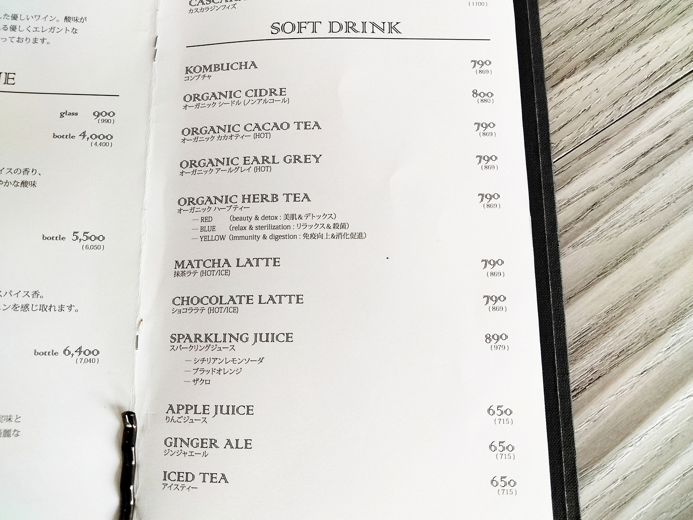 オーガニックメニューを中心としたソフトドリンクも豊富。