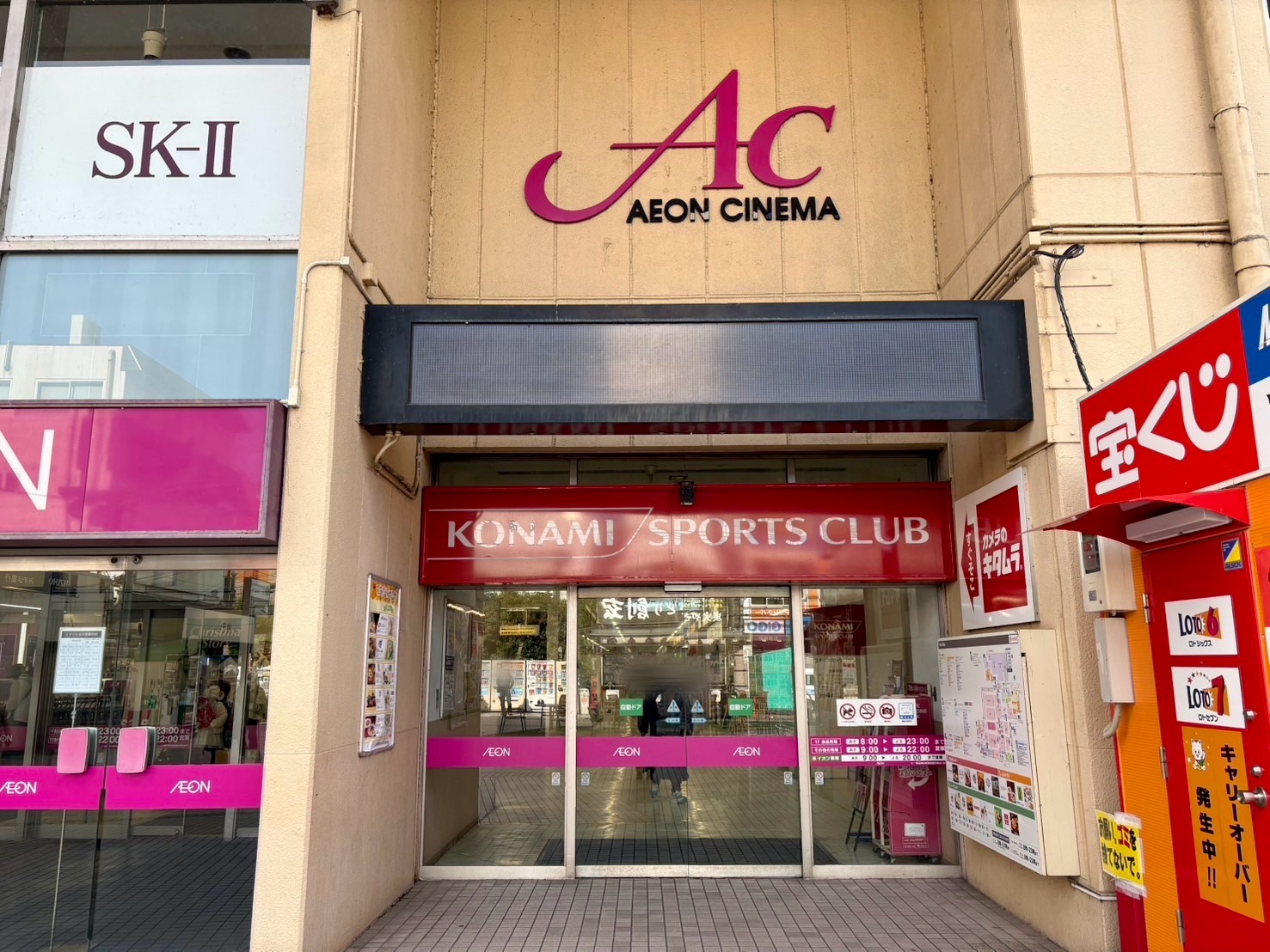 イオン海老名の入口と並んで「コナミスポーツクラブ 海老名」の入口があります。