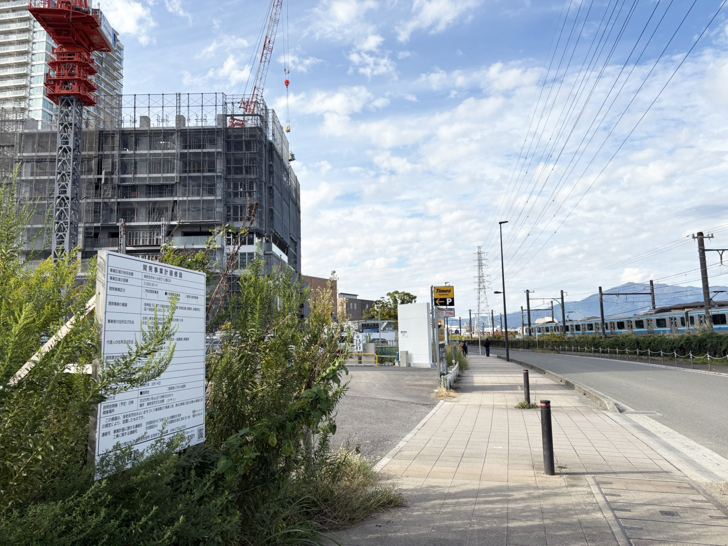 この「タイムズ海老名駅前第2」駐車場も、再開発の一環として工事区域に入るようです。