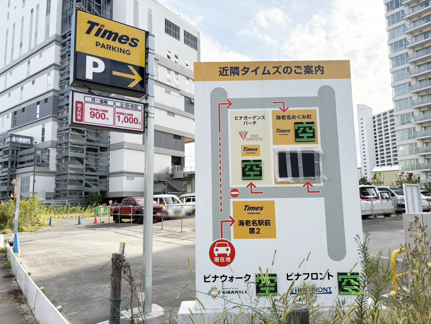 ビナガーデンズパーチ近くにある「タイムズ海老名駅前第2」駐車場が11月1日(土)をもって営業終了するとのことです。