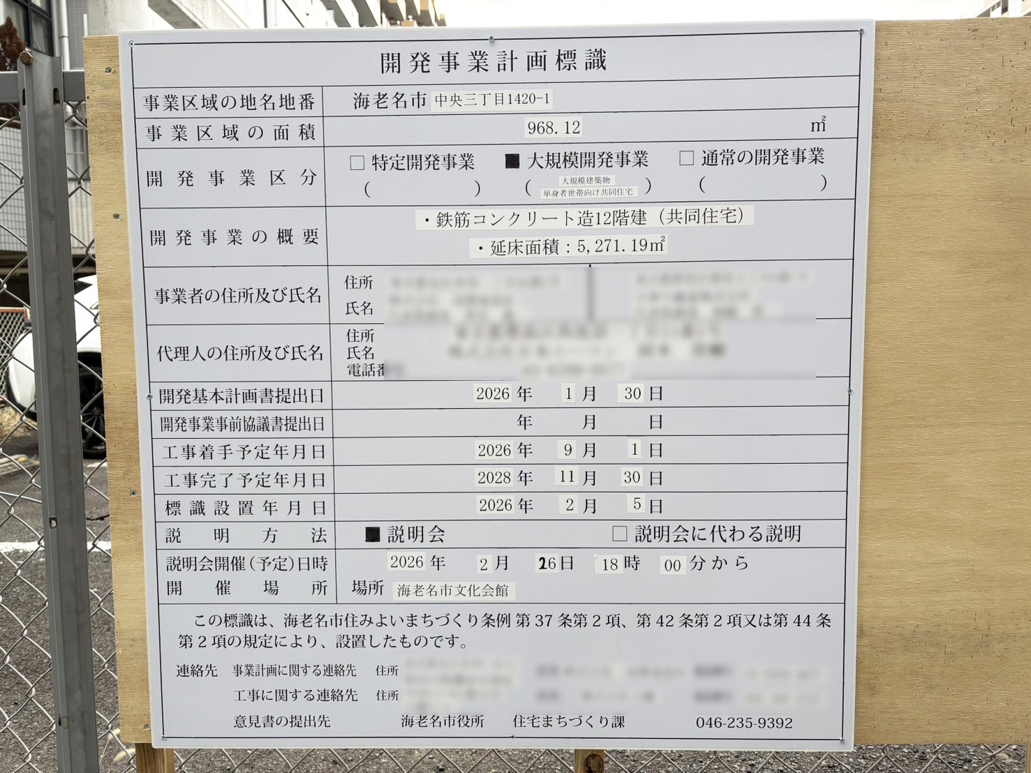 掲示内容によると、12階建ての共同住宅が建設予定とのことでした。