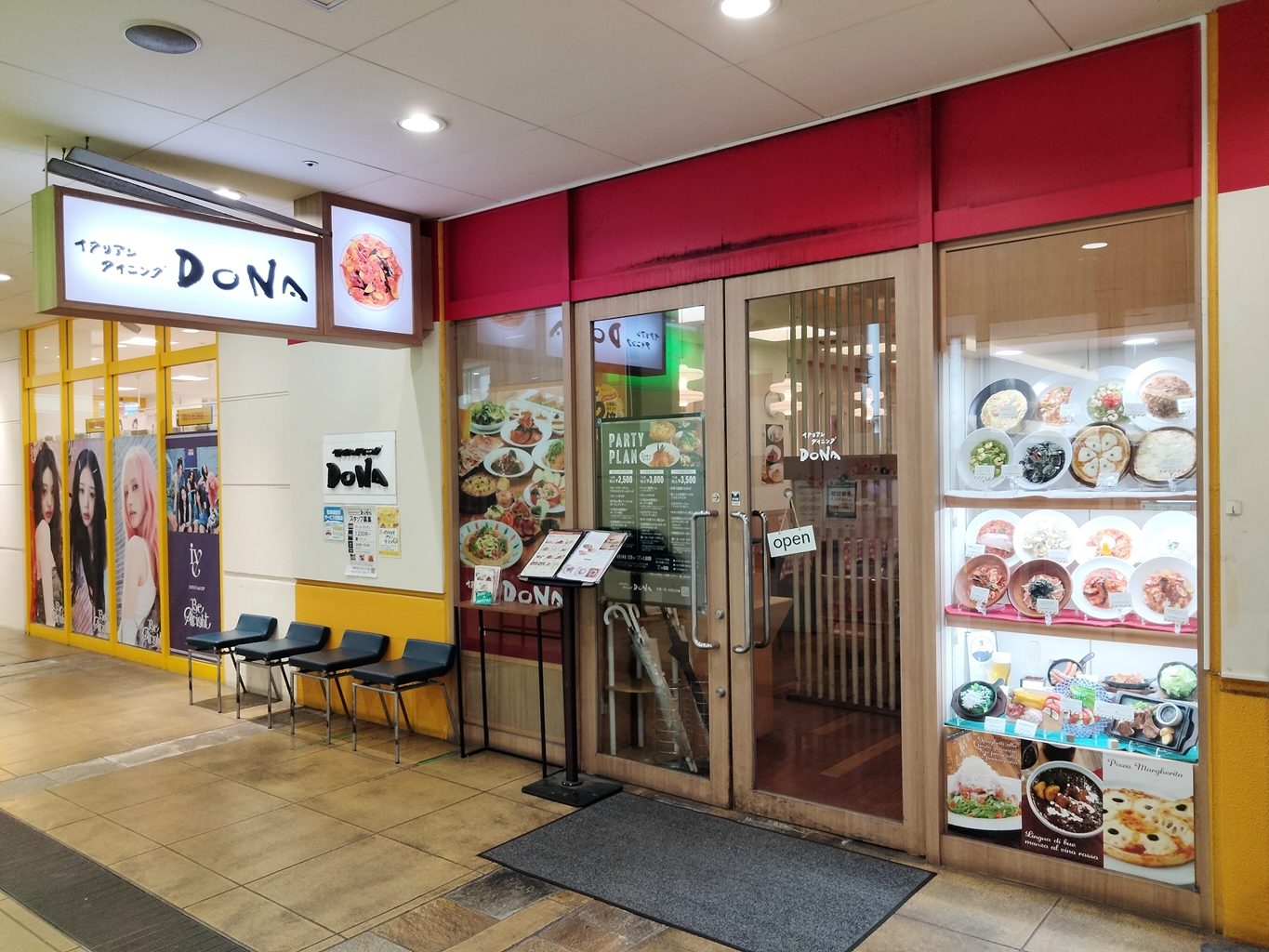 「イタリアンダイニングDONA 海老名店」場所は海老名駅直結・ビナウォーク5番館1F。