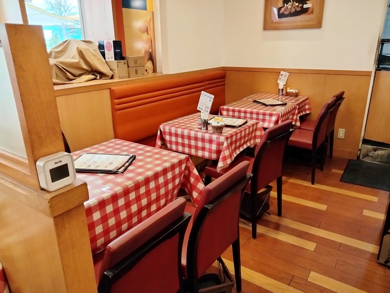 店内に入ると、赤いギンガムチェックのテーブルクロスが可愛いテーブル席が多数並んでいましたー♪