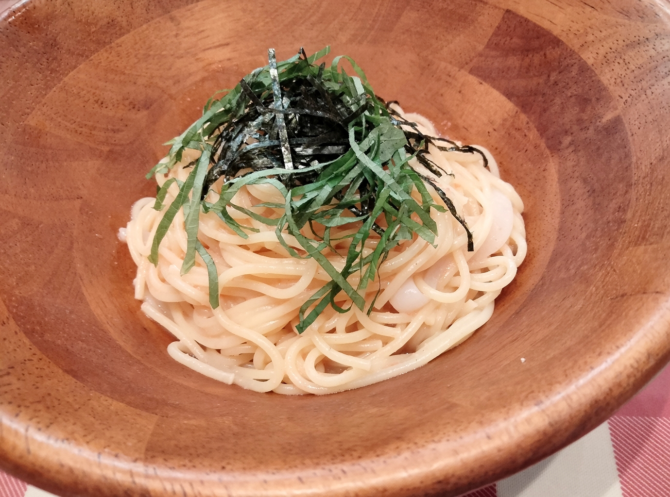 友人オーダーの博多明太子パスタは、たっぷりと入った明太子がピリッと辛く、