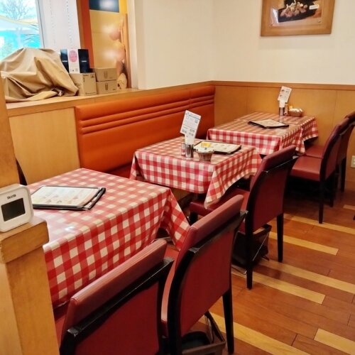 店内に入ると、赤いギンガムチェックのテーブルクロスが可愛いテーブル席が多数並んでいましたー♪