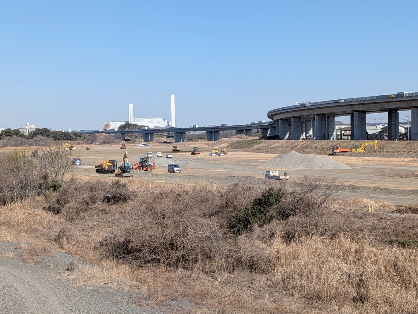 【話題】相模川河川敷で「スポーツ・コミュニティ広場」を作る工事が始まっていた!期間は7月31日までを予定。[海老名市河原口]