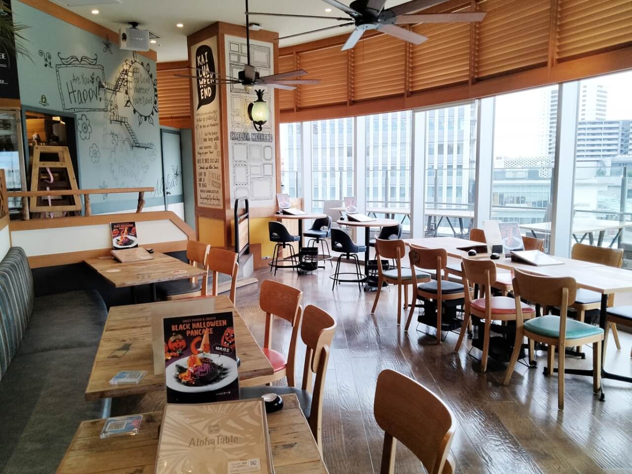 ウッド調の店内は大きな窓が広がり開放感抜群です♪