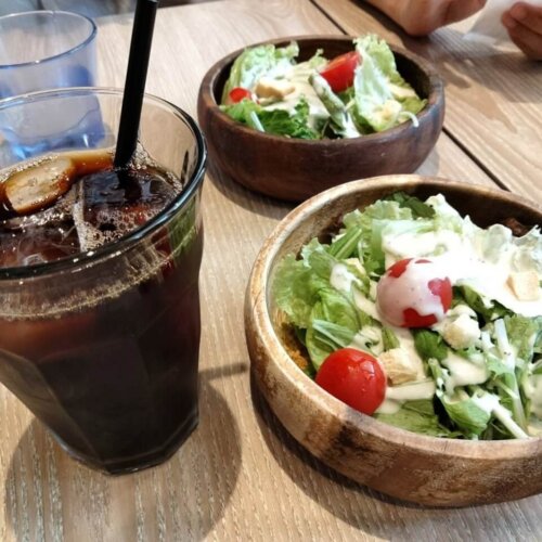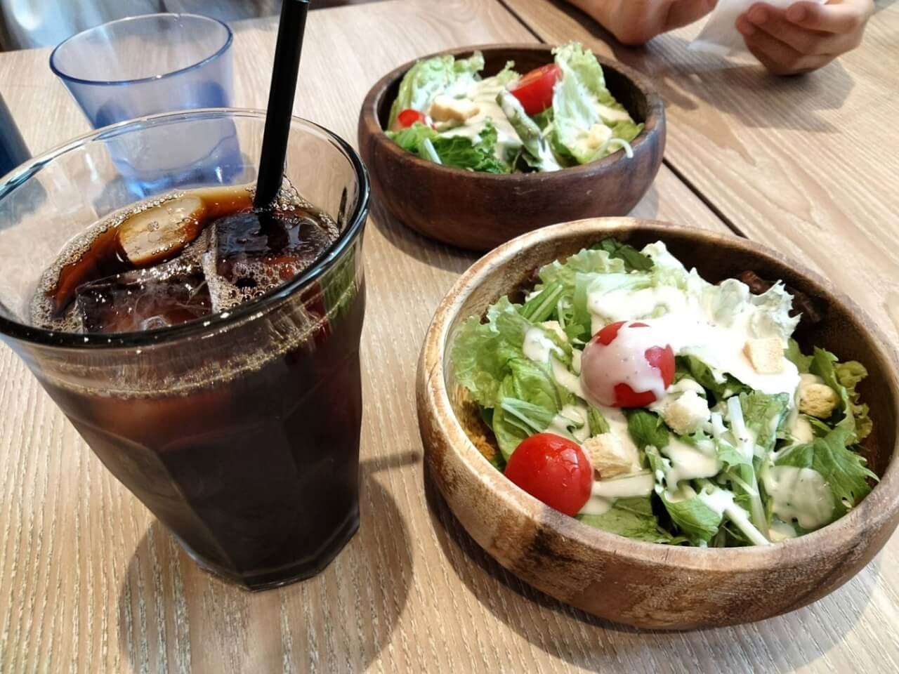 初めに運ばれてきたセットのサラダ&ドリンクを頂きながら、まったりと待ちます。