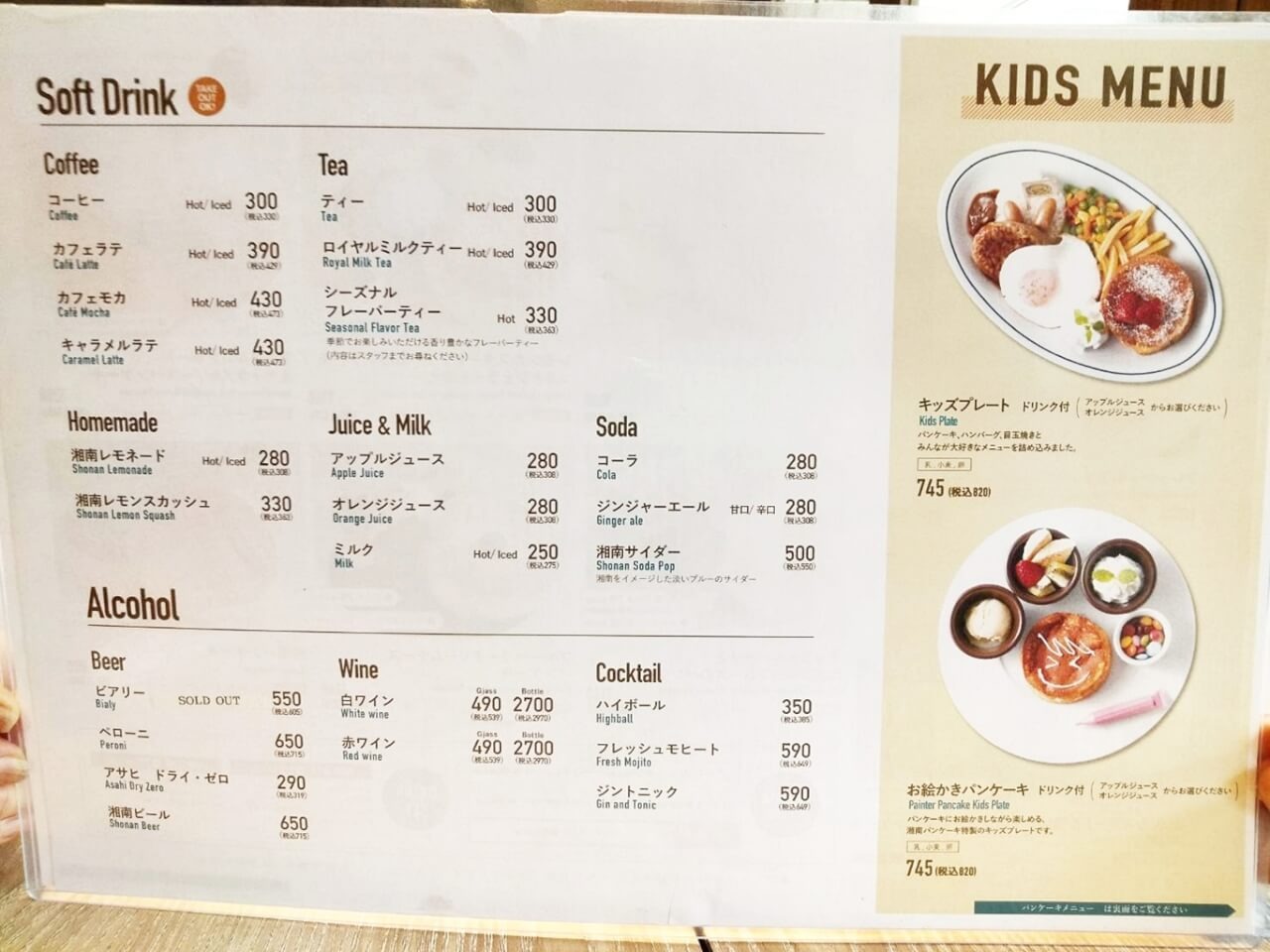 ほかにもカレーやオムライスなどのフードメニュー・キッズメニューもあります。