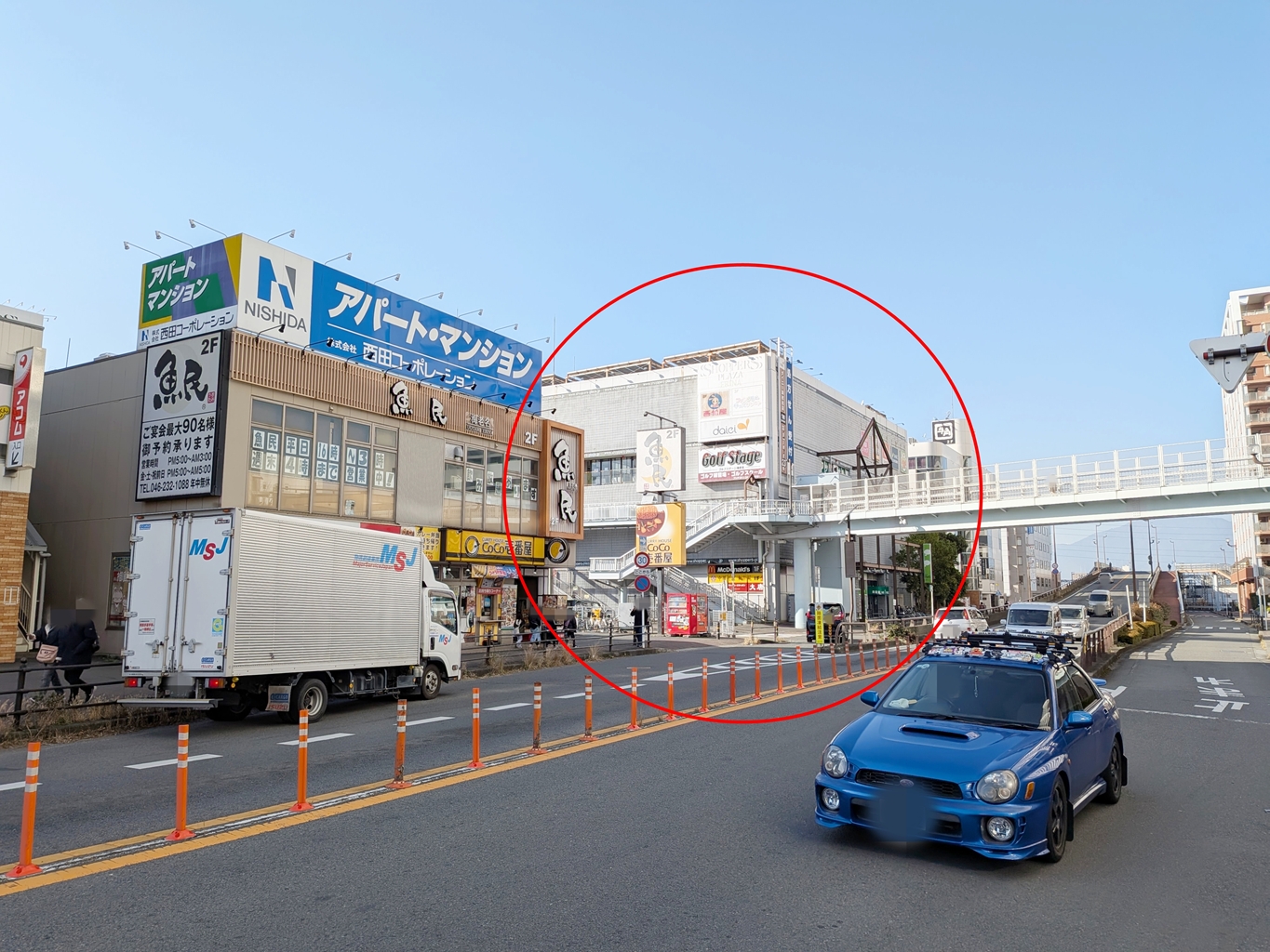 ダイエー海老名店と同じく「海老名駅入口」交差点付近ですが、その交差点を超えた反対側に位置します。