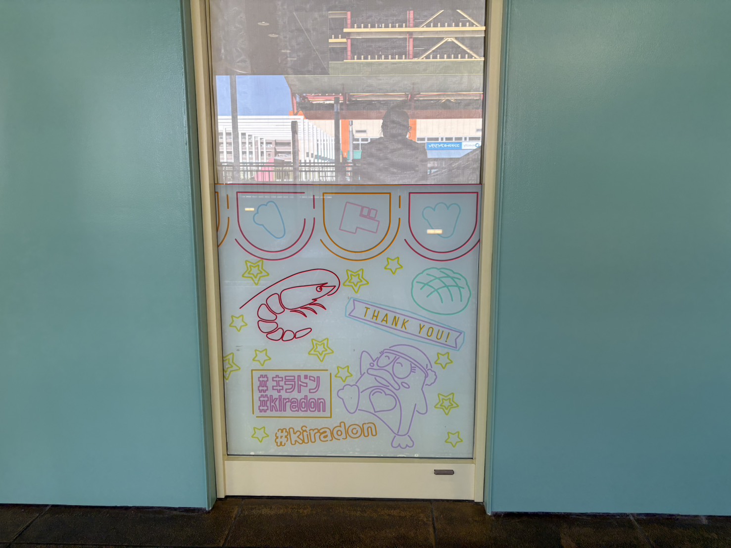 現在はライトグリーンの壁になり、そしてその窓にカラフルでポップな「キラドン」デザインが登場しました!!