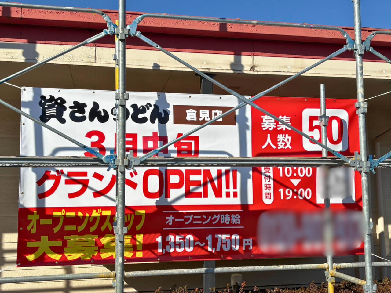 繰り返しとなりますが、「資さんうどん 倉見店」は3月中旬寒川にオープン予定です!