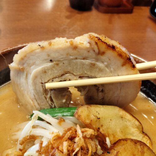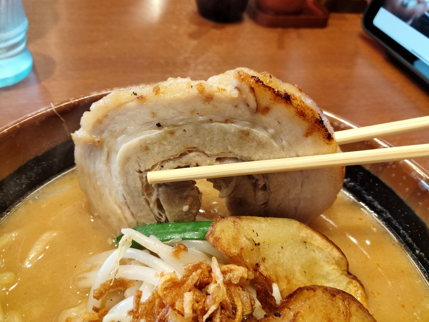 「味噌漬け炙りチャーシュー(一枚・税込187円)」をトッピングでオーダーしました。