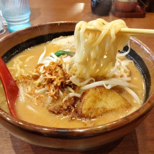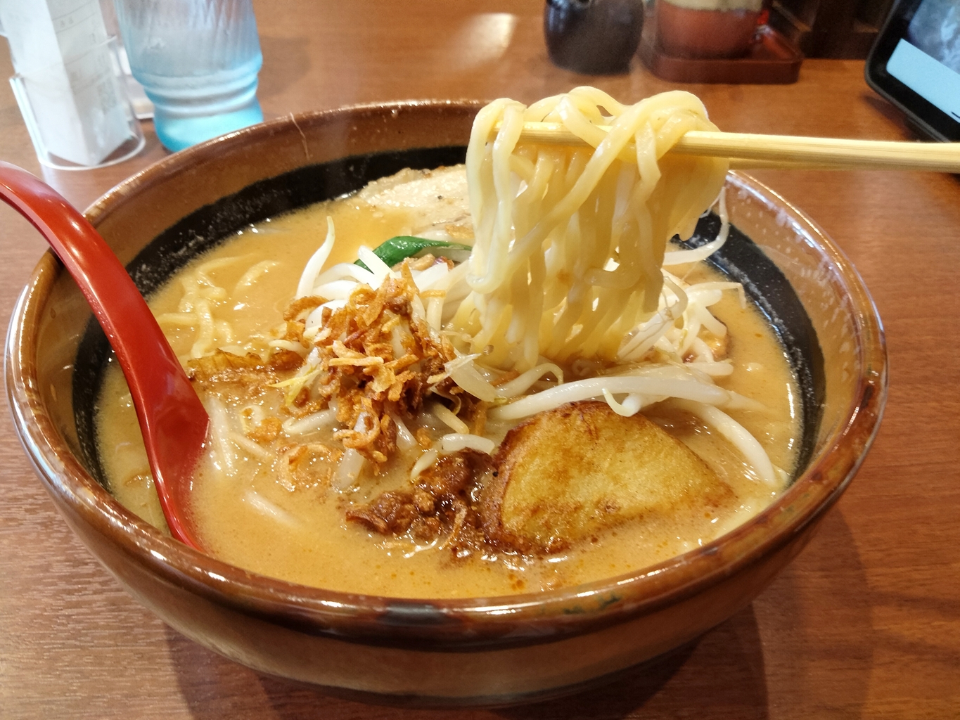麺はしっかりした太麺で、濃口の北海道味噌のスープにぴったり★