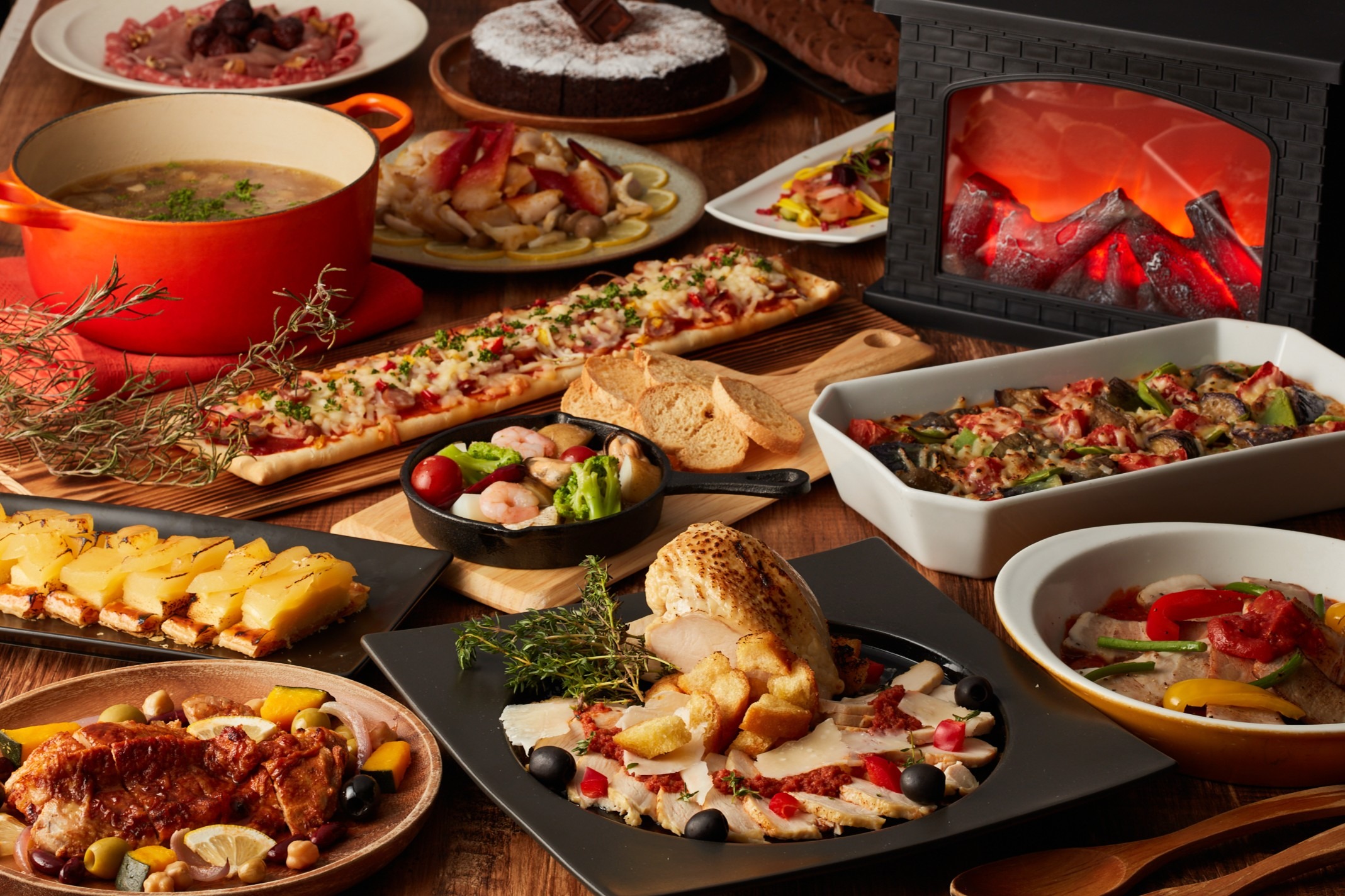 冬のグルメ 「白身魚と小海老のアヒージョ」や「ムサカ(ナスと挽肉とトマトのグラタン)」など、ホテルバイキングの味を堪能できます。