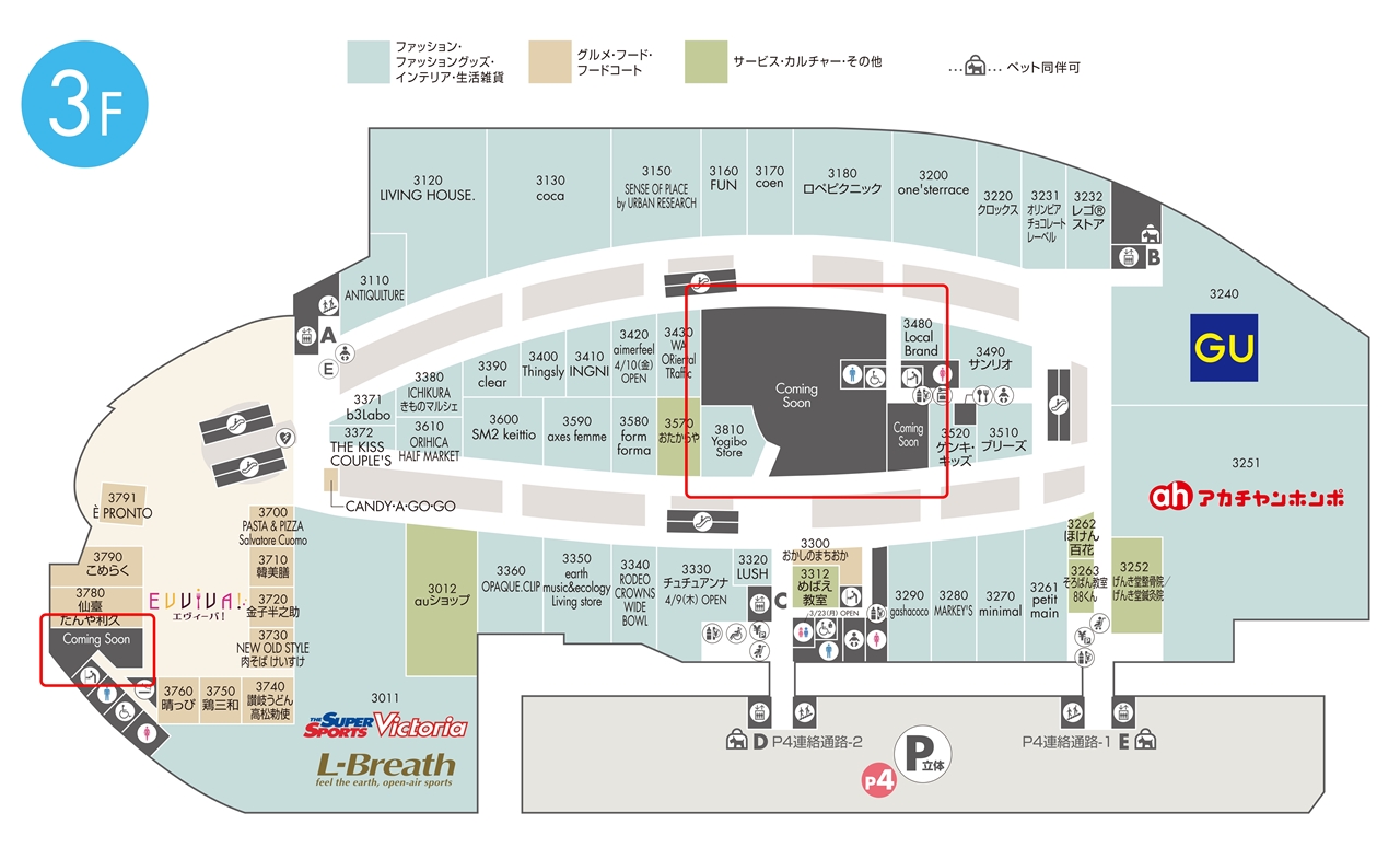 なかでも注目は、上記フロアガイドにて赤枠で囲われている3F中心エリアのリニューアル!