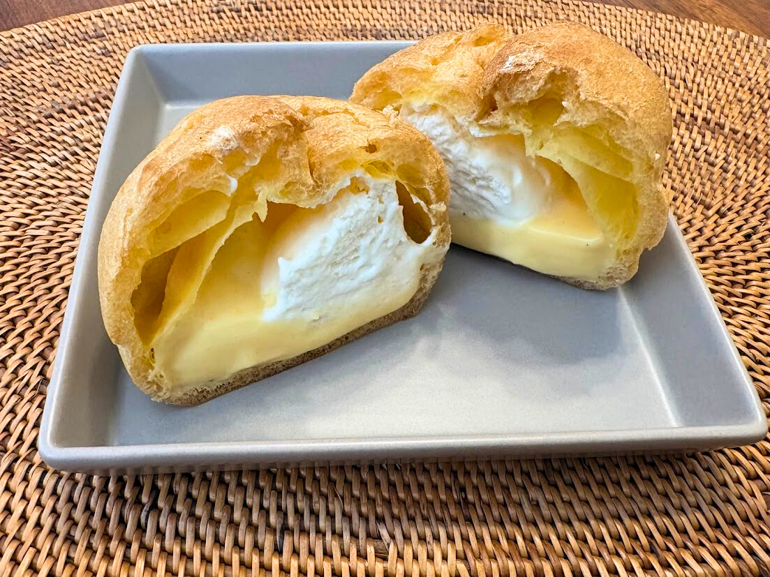 シュークリームは軽やかなたっぷりの生クリームとカスタードのW使いで、