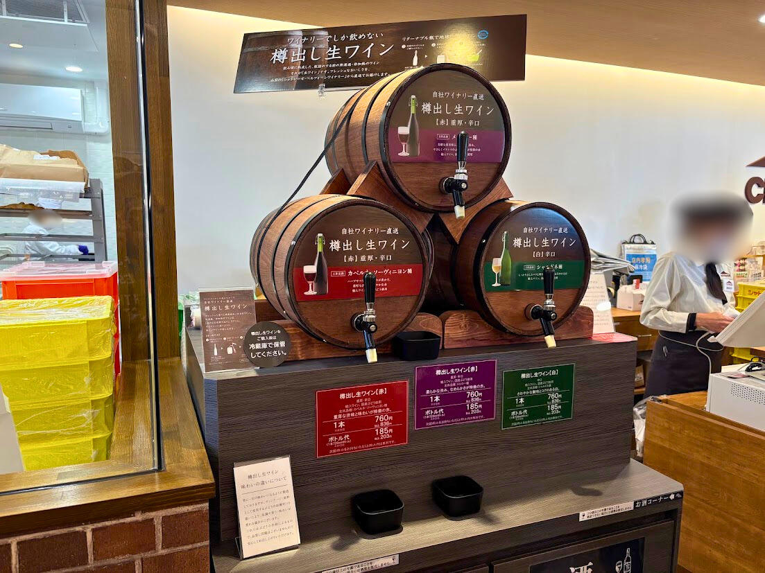 専用サーバーからボトルに直接詰める「樽出し生ワイン」↓(気になる~)