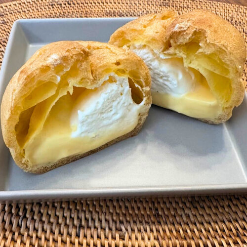 シュークリームは軽やかなたっぷりの生クリームとカスタードのW使いで、