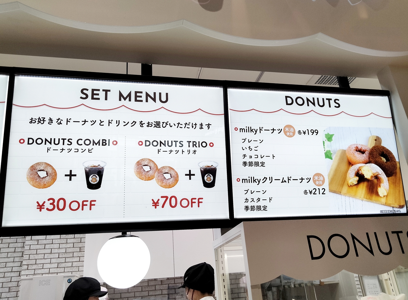 ドーナツとドリンクとのオーダーでおトクになるセットメニューなどもあるようです。
