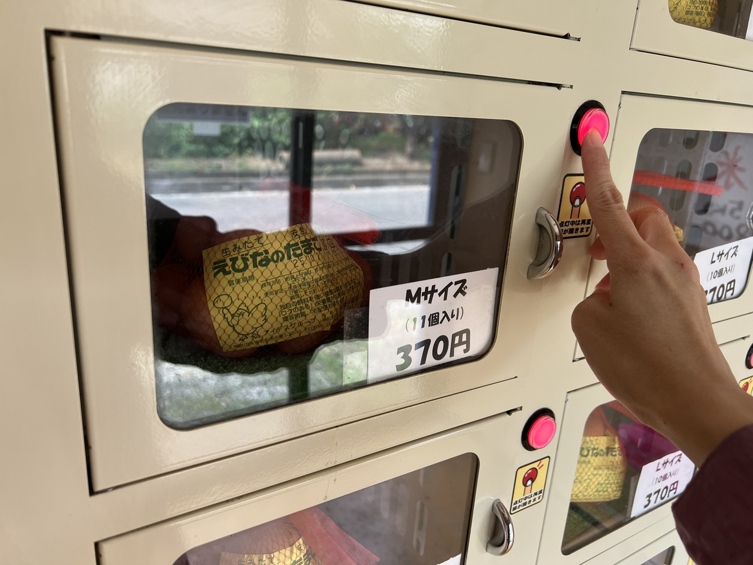 自動販売機は24時間いつでも、新鮮なえびなの生みたてたまごを購入できるので、
