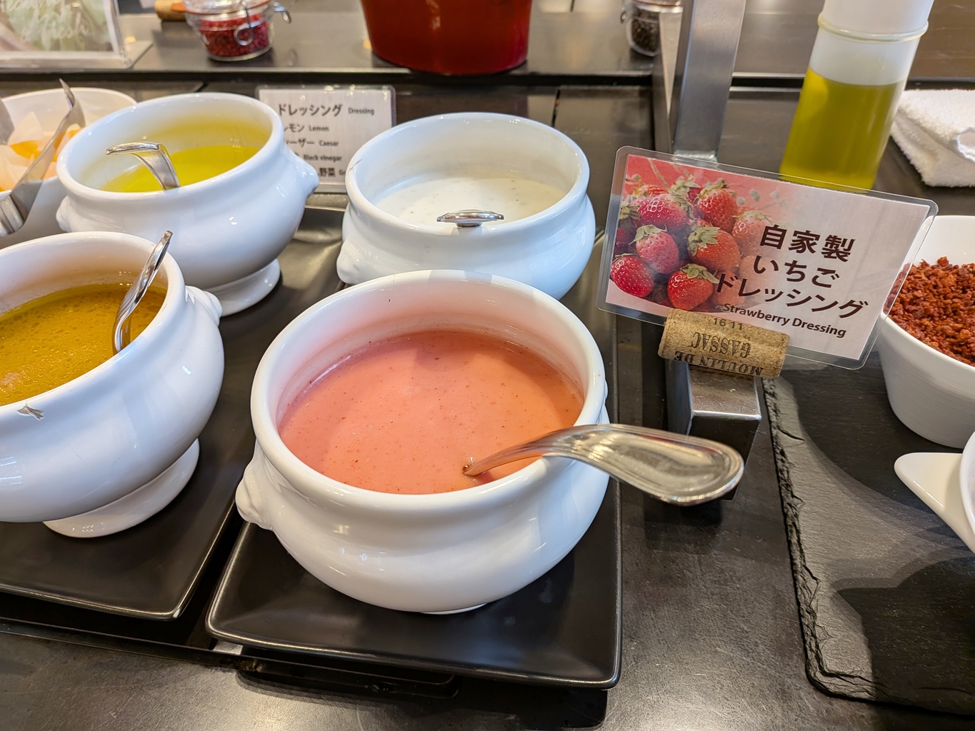 サラダバーでは、この期間だけの自家製いちごドレッシングを発見しましたよー!