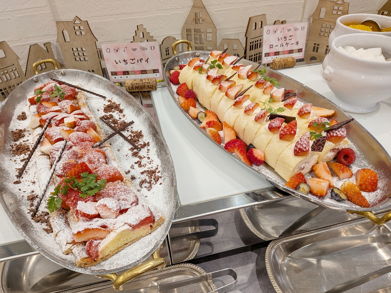 苺デザートには苺パイ、苺ロールケーキ、苺タルトなど、苺スイーツ好きにはたまらないメニューがずらり!