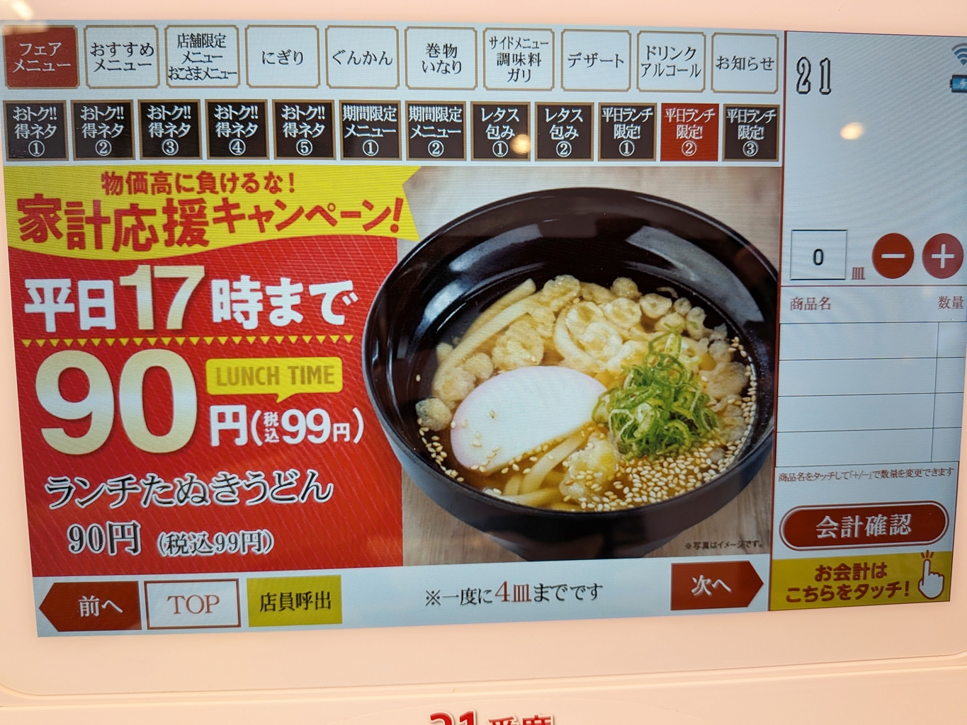 ここでお寿司は一息いれて、話題の99円うどん&ラーメンを実食。