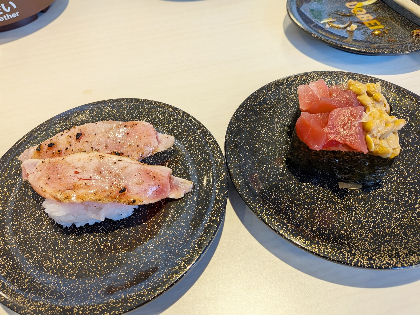 さらにまぐろで攻めて、まぐろステーキ&まぐろ納豆軍艦を。