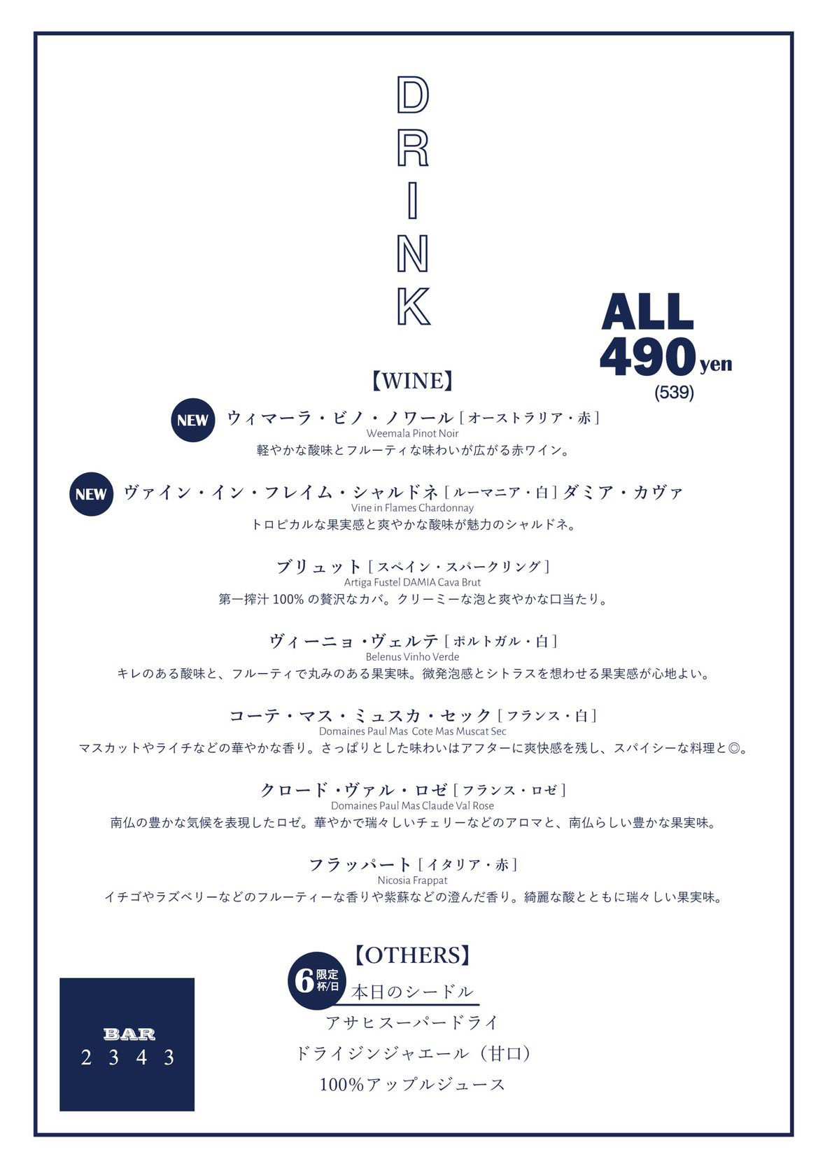・BAR2343 16:00~21:00(L.O. 20:00)